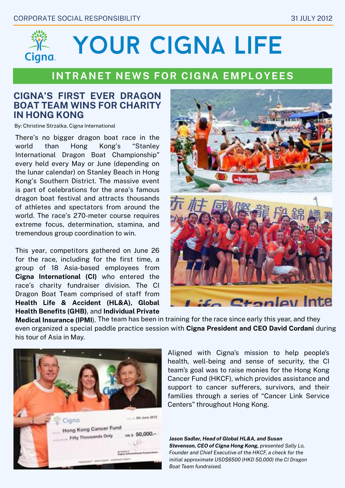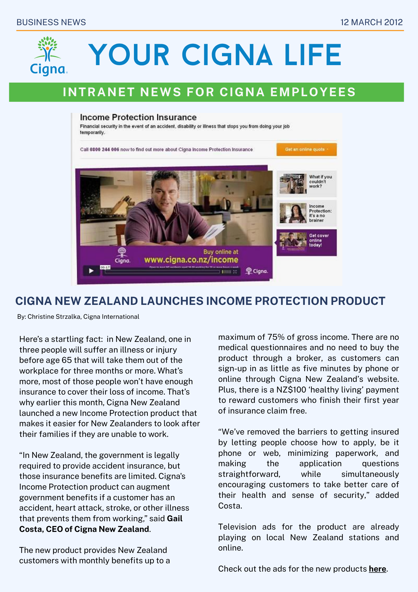 Internal: ~35% more interactions for global team articles on the employee intranet. Improved visibility of Cigna International's products.