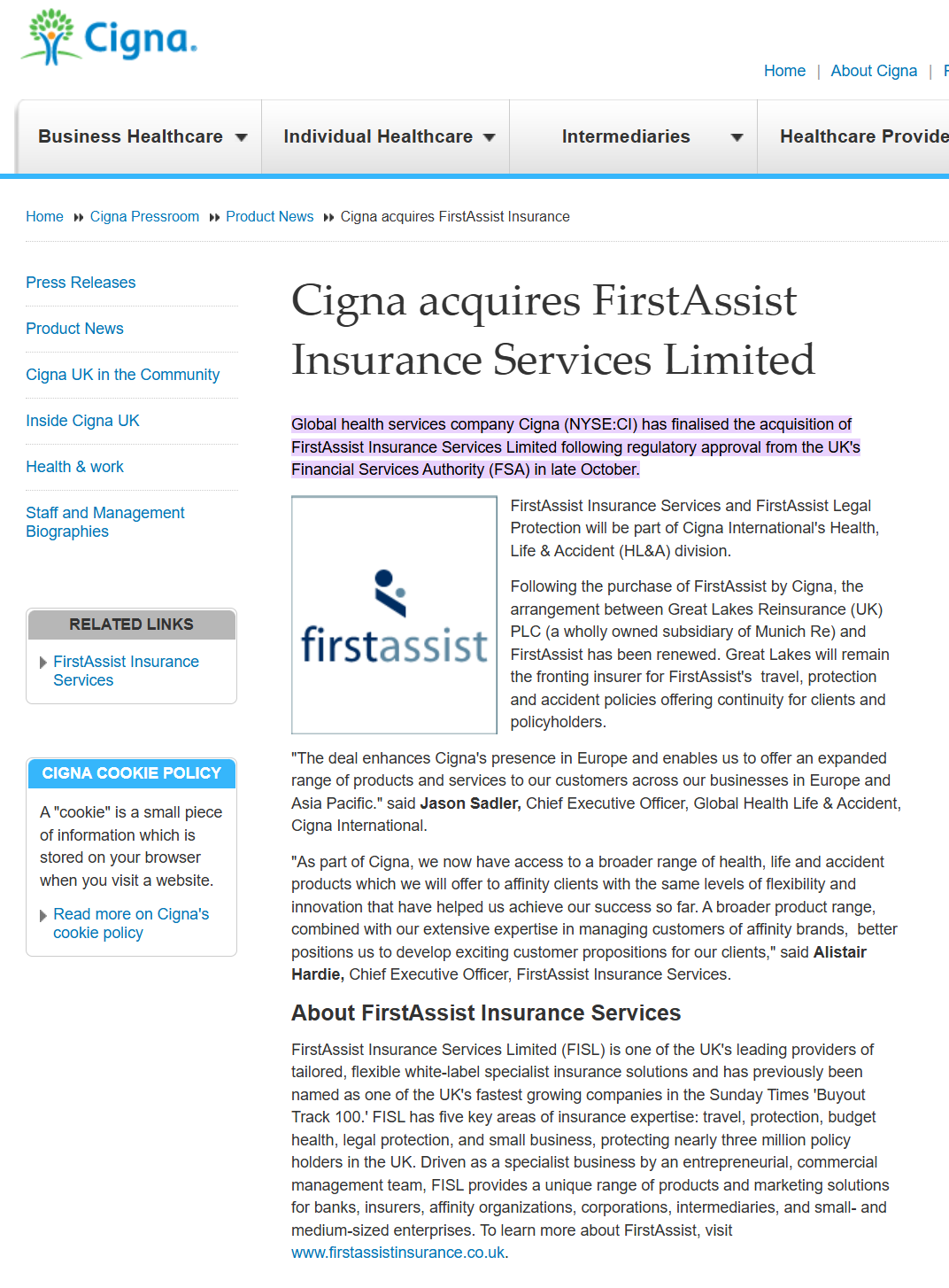 Concurrent with the re-branding, Cigna was expanding its businesses globally with M&A activity in Turkey, India, and in the UK. I mapped the global external communications plans for these events, and coordinated across legal, PR, and marketing to ensure that all messaging that global teams produced was accurate, consistent, and brand compliant.