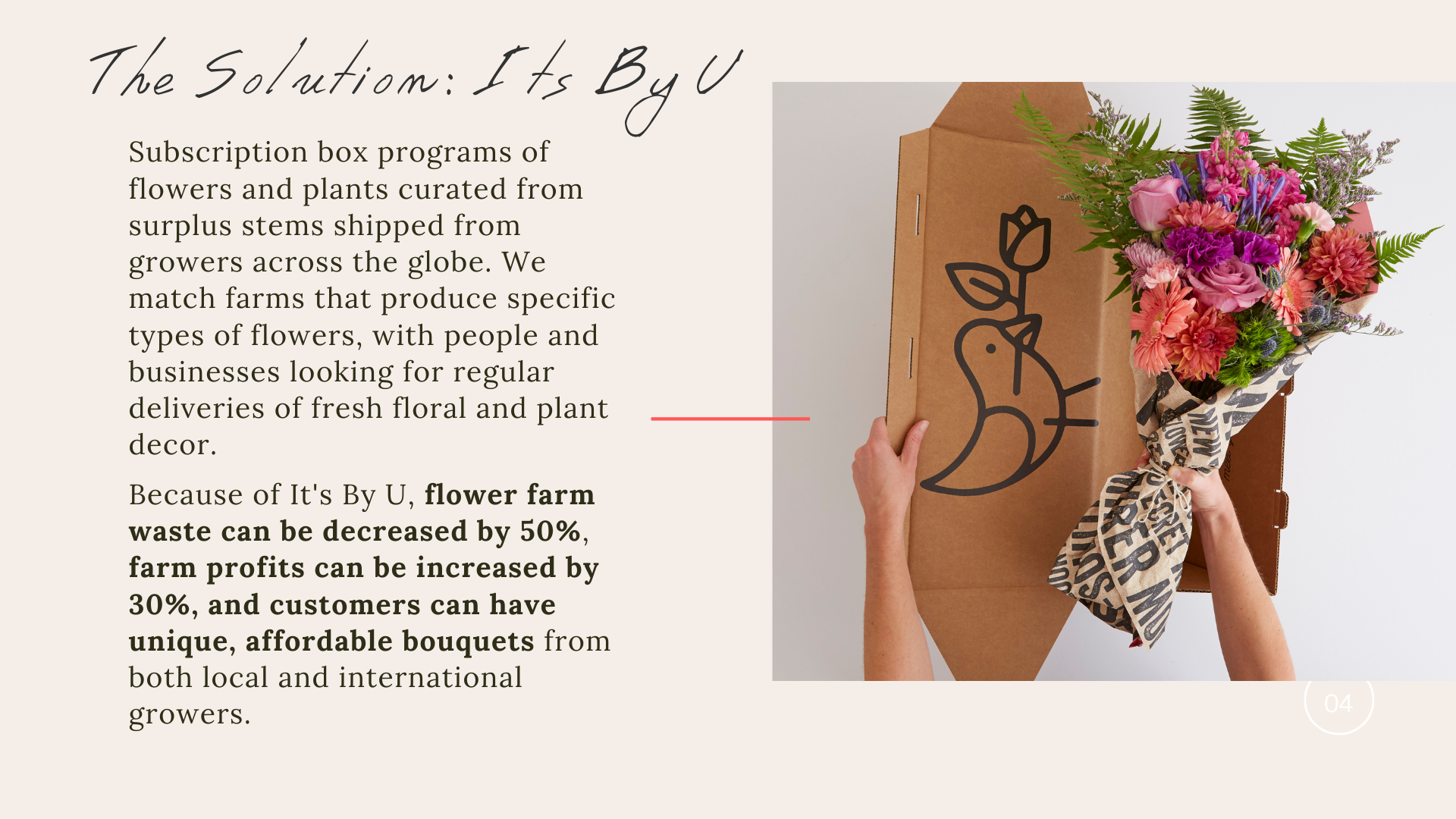 Below are some examples of my work from the original It's By U investor pitch deck, and the new "Ready to Bloom" re-brand roadshow deck.